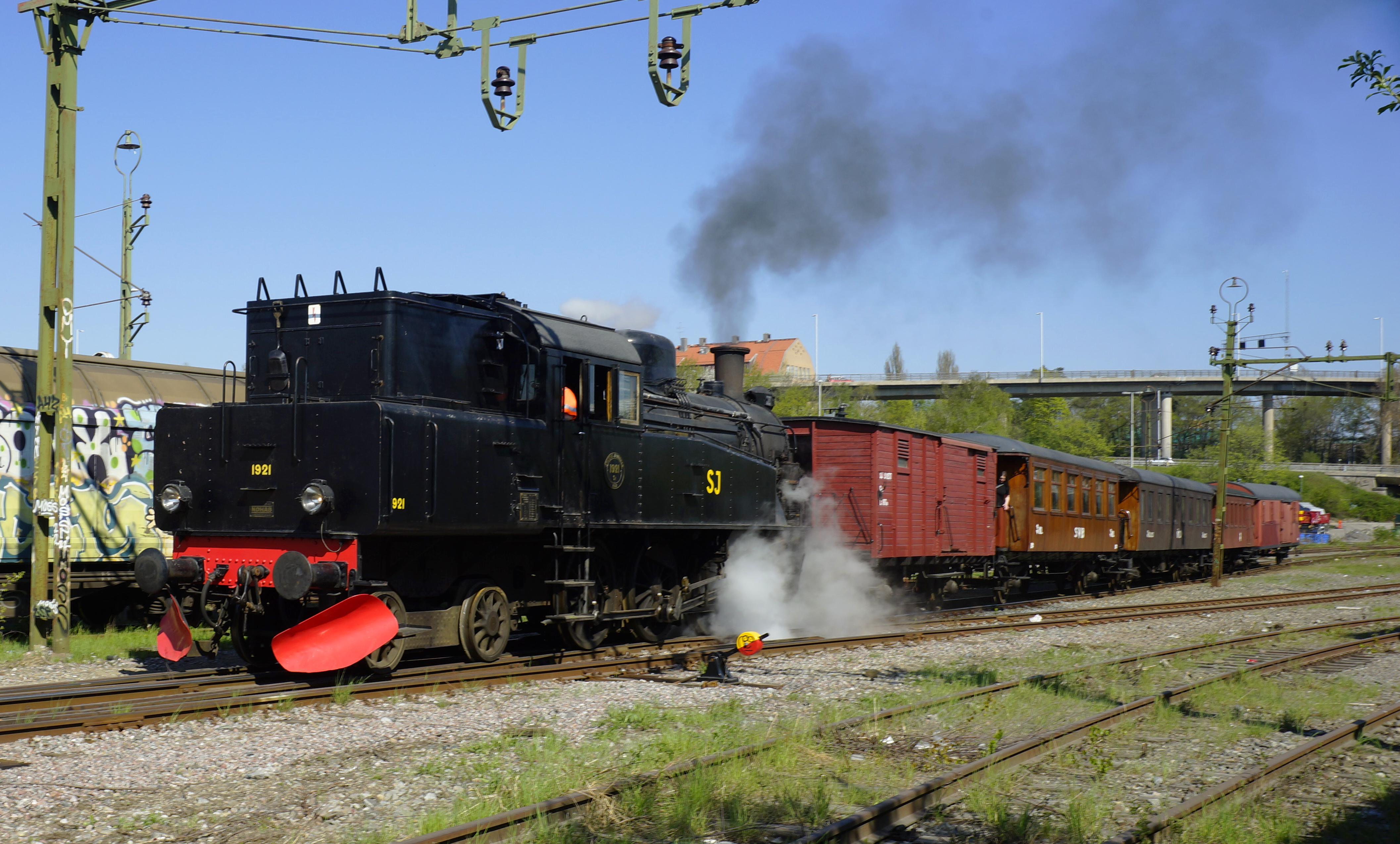 Lördagen den 13 maj så bjöd vi in till Öppet Hus, även kallat Tågsläpp, till vårat området i Västberga. I samband med den här dagen så fanns även S1 1921 påeldad inför resan till Södertälje den 14 maj, vilket uppskattades av besökarna. Lördagen bjöd på många besökare som fick se sig om och klättra på våra lok och vagnar. Uppslutningen var mycket god i ett strålande försommarväder. På söndagen så kördes det ångtåg från Västberga via Älvsjö och till Södertälje Hamn och åter. På grund av att vi fick tidtabellen först på onsdagen så blev annonseringen lite kortsiktig, men vi hade ändå bra med resenärer på den första turen. Men tyvärr så blev det bara en tur av de två planerade och det på grund av att banan mellan Rönninge och Södertälje, stängdes av för släckning av en närliggande skogsbrand, men vi fick i alla fall köra en vända med nöjda resenärer.