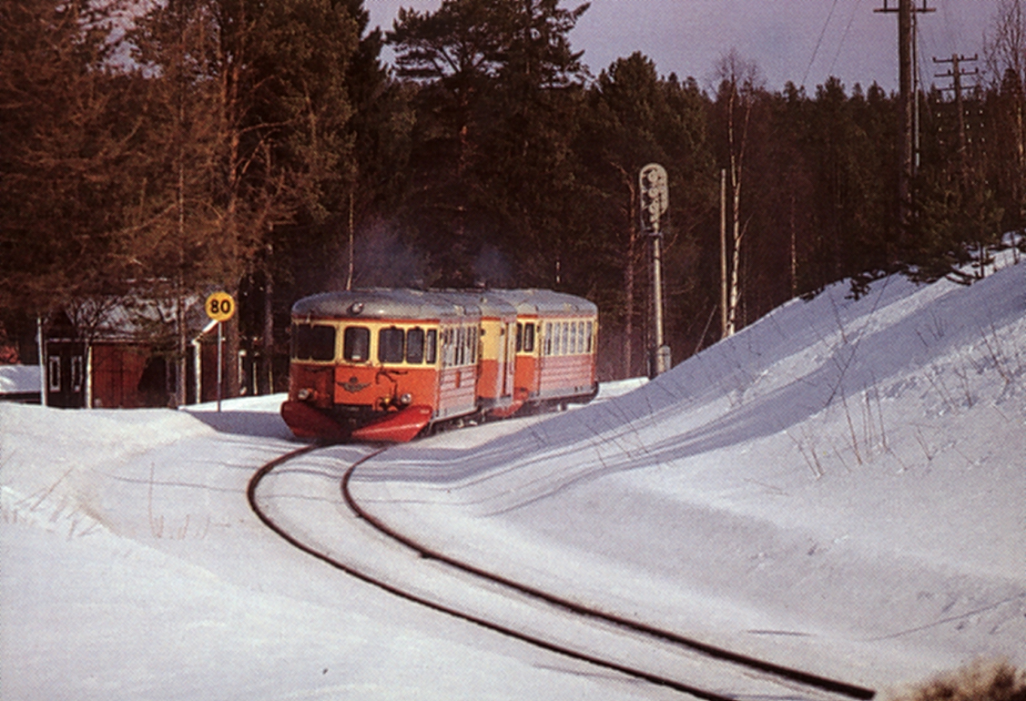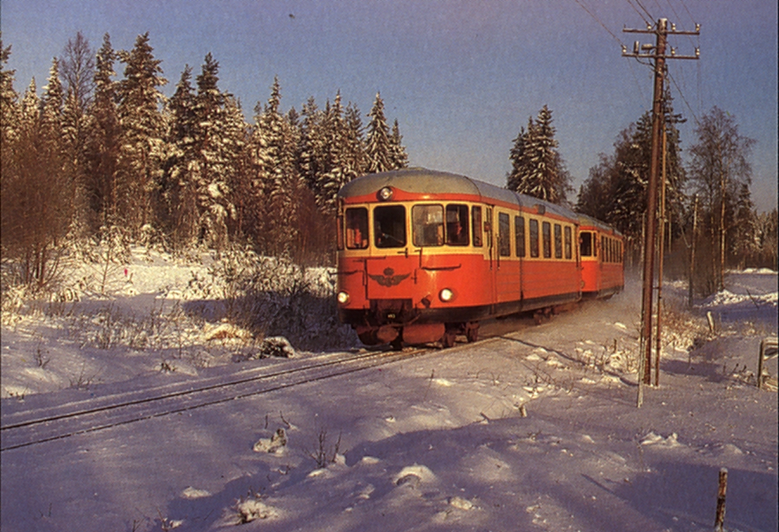 64 Rälsbusståg vid Hallstavik 1966-08-xx