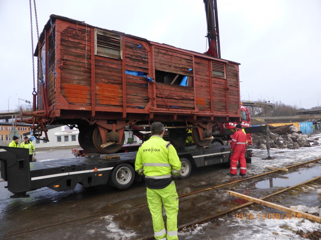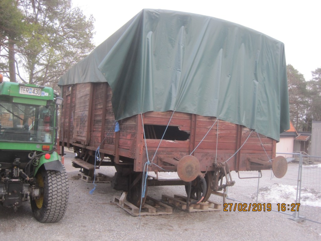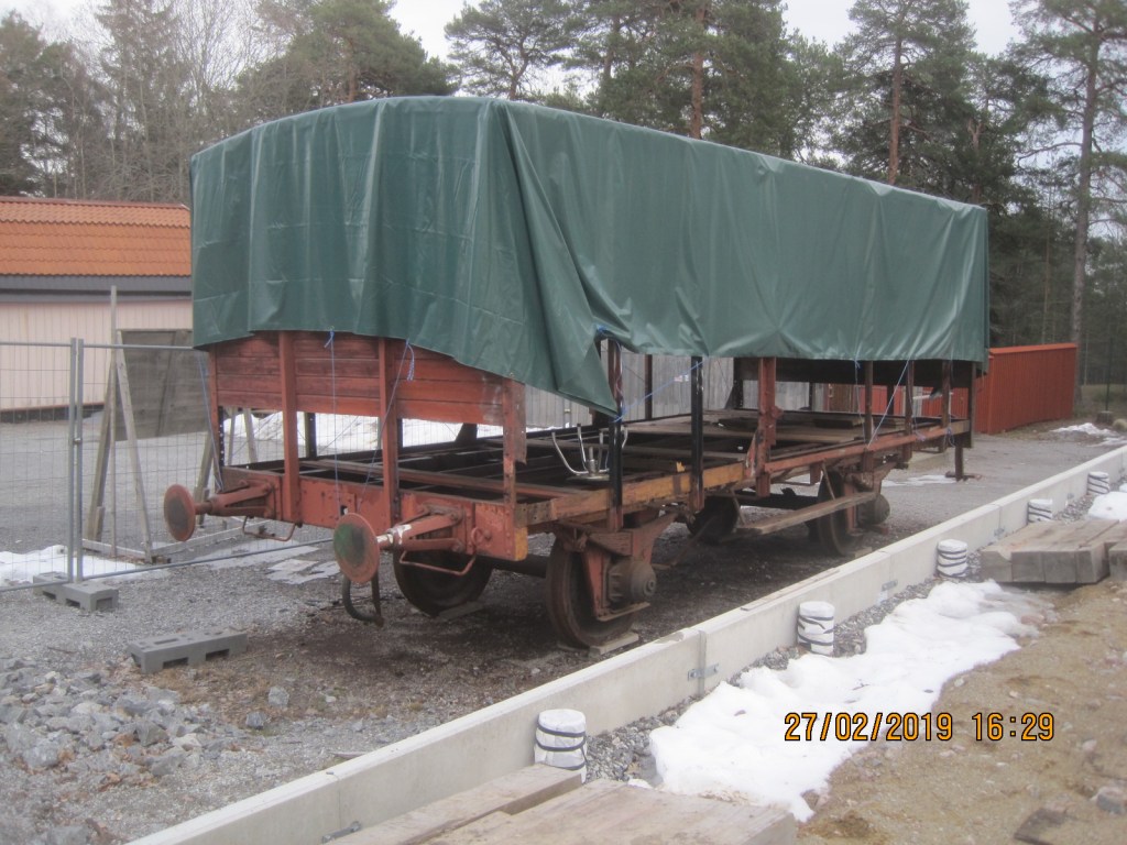 Under 2018 så kom några fordon att lämna SÅS. Torekällbergets Friluftsmuseum i Södertälje håller under 2017-18 på att bygga upp en autentisk järnvägsmiljö med Södertäljes järnvägsknutar som tema. Till museets har därför SÅS sålt tre fordon som vi inte längre har något behov av, fordon som inte passar i vår verksamhet men som vi ändå skulle vilja se i sin prakt. Valet vart att sälja ångloket SSnJ 7 samt två ”plattaksfinkor” av modell Gsö och Gsh. I slutet av februari så vart den första av dessa fordon avhämtat i Västberga (se bild ovan) och transporterat till Södertälje och här handlade det som den gamla Gsö-finkan från SJ nr: 18384 byggd 1904 av gjuteribolaget i Landskrona. Gsö:n är en av SÅS första vagnar och kom till oss 1975 och blev SÅS första egna vagn. Även godsfinkan SSnJ Gsh 104, byggd 1904 hos Kockums kommer under våren att flyttas till Södertälje, den står dock nu i lokstallet i Katrineholm med ett trasigt hjullager men kommer via landsväg att flyttas. Vagnen kom till SÅS 1976 från Saltsjöbanan.