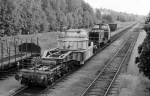 - Ute på bangården i Västberga så lastades vagnbjörnar med godsvagnar för vidare transport till Midsommarkransen: Foto: Okänd