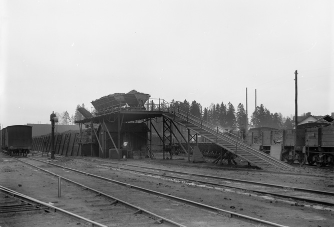 SÅS och KÅS finns ju idag i Katrineholms lokstall, det här är kolgården vid stallet på 1930-talet, idag helt borta. Foto: Okänd