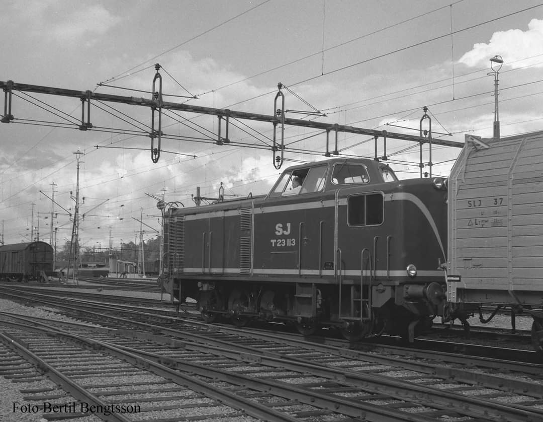 Här har T23 113 blivit normalspårig men inte fått hytten breddad ännu. I kopplet har den ”Silverpilen” på väg mot Lövsta. Foto: Okänd